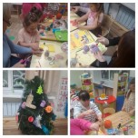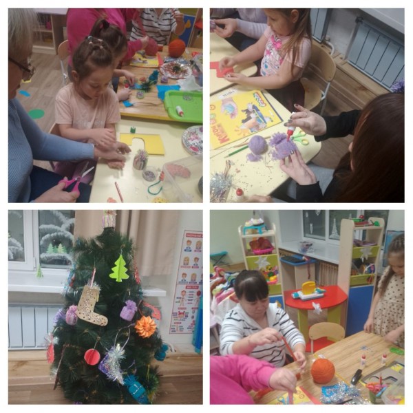 Сегодня в нашей группе прошел мастер- класс по изготовлению новогодних ёлочных игрушек. За разговорами о предстоящем празднике родители и дети с удовольствием принялись за дело. Они вырезали, клеили, вязали и украшали свои извинения. А по завершении работ украсили нашу ёлочку.